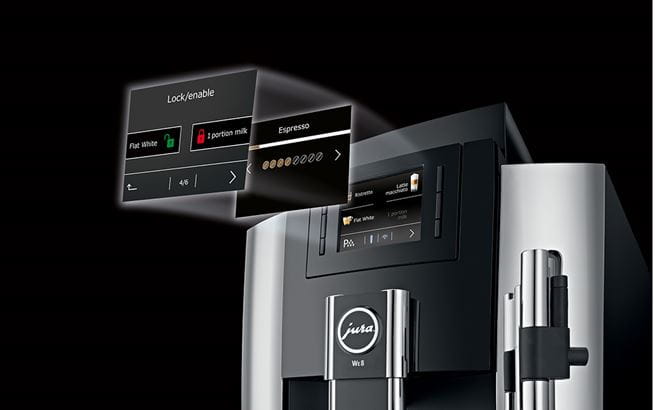 Whether the One-Touch Cappuccino function for trend specialities such as latte macchiato, flat white and cappuccino or the Pulse Extraction Process (P.E.P.®) that optimises the extraction time and guarantees the very best aroma for short speciality coffees – kitted out with the latest JURA technologies, the new WE8 conjures up an impressive range of speciality coffees at the touch of a button.